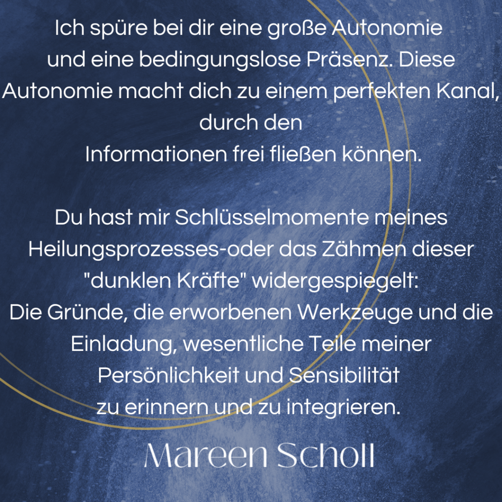 “Ich schätze die Selbstbestimmung bei Mareens Aufstellungen sehr. Hier bekomme ich nichts von anderen übergestülpt, sondern es ist wirklich meins. Pur. Keine Konzepte, keine Dogmen, sondern freies Erleben. Super spannend, was sich in so einem Feld zeigt und entwickelt.”
