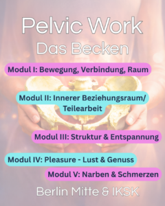 Pelvic Work. Das Becken ist eine 5-teilige Workshop/Weiterbildungsreihe. Die Arbeit mit dem Becken als Teil der Gesamtkörperstruktur, als Bezugspunkt zum Thema Sexualität, Verkörperung und Gesundheit, kann sehr vielfältig aussehen. Verschiedene Methoden und Ansätze haben ganz eigene Qualitäten und Nutzen, berühren unterschiedliche Ebenen. Auch sprechen verschiedene Ansätze Menschen unterschiedlich an, sowohl als Practitioner*in als auch Klient*in.